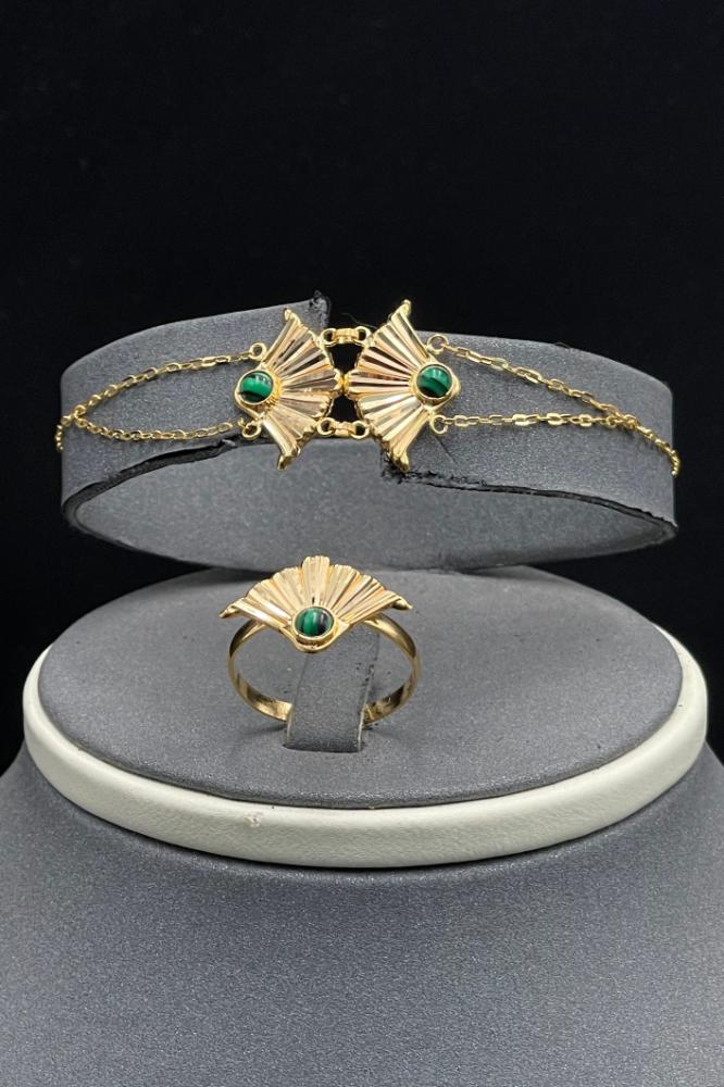 طقم رموش ذهب مع صدف اخضر عيار 21 وزن 8.3 جرام