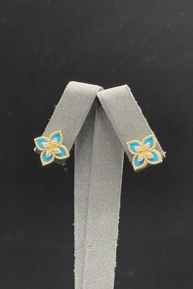 أضيفي لمسة أنثوية راقية مع حلق وردة ذهب عيار 18 تصميم الماس بوزن 2.2 جرام من متجر خالد حلبي. تصميمه الأنيق مستوحى من جمال الورود ليمنحك إشراقة ناعمة وفخمة في جميع المناسبات، سواء للاستخدام اليومي أو كهدية مميزة لمن تحبين.