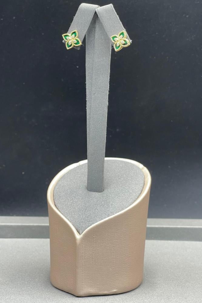 👉 اكتشفي تشكيلتنا الحصرية من أقراط الذهب المزينة بالورود وتصميم الماس لدى خالد حلبي الآن.