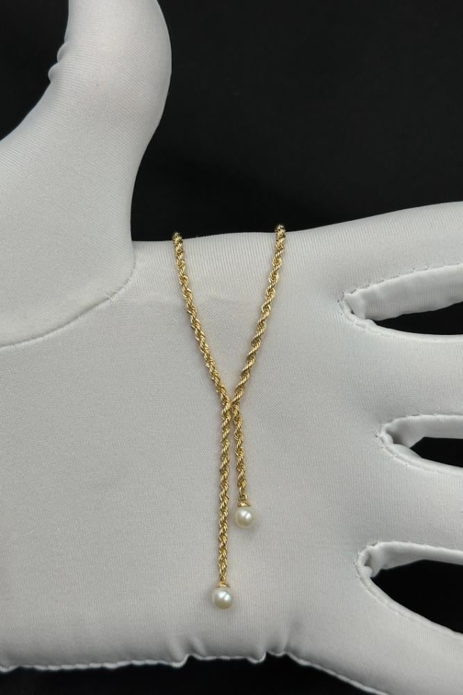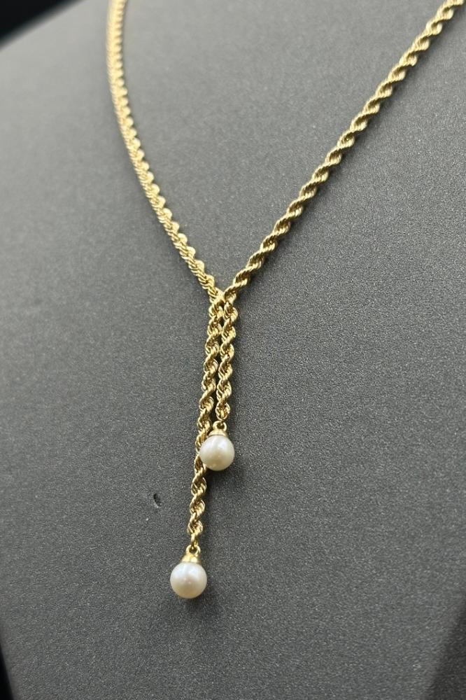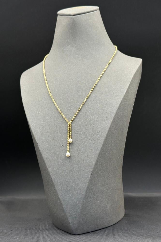 وزن من 2.5 الى 2.6 جرامعيار 18طول العقد 52 سمعقد مجدول ذهب مع كور لؤلؤسعر المنتج مرتبط بسعر الذهب العالمي