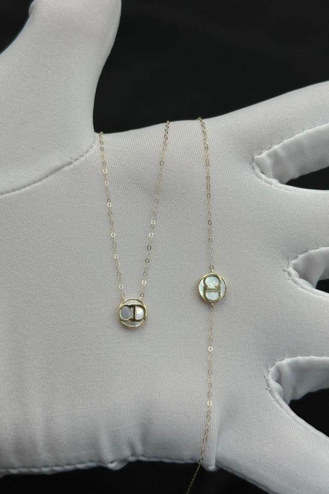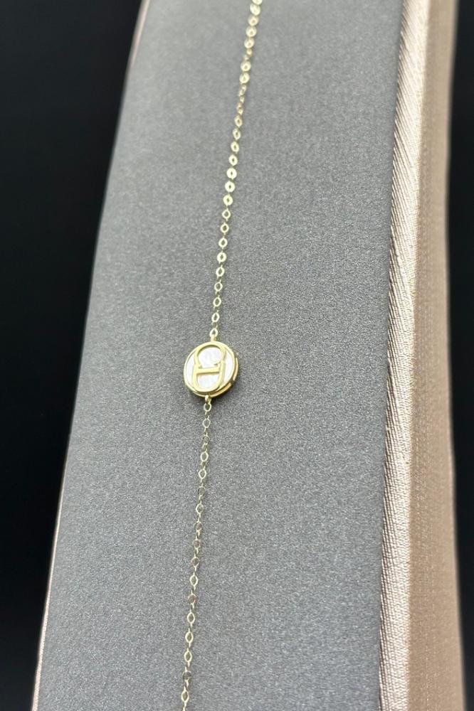عقد مع اسوارة ذهب مع صدف ابيض عيار 18 وزن 0.9 جرام