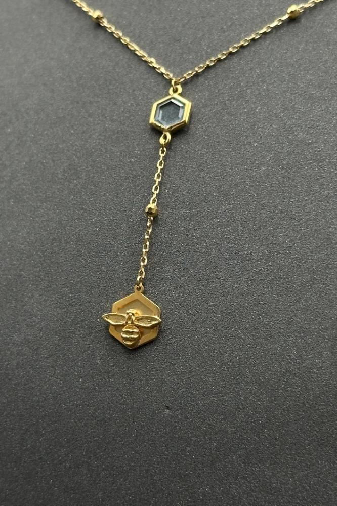- عقد نحلة ذهب تصميم الماس