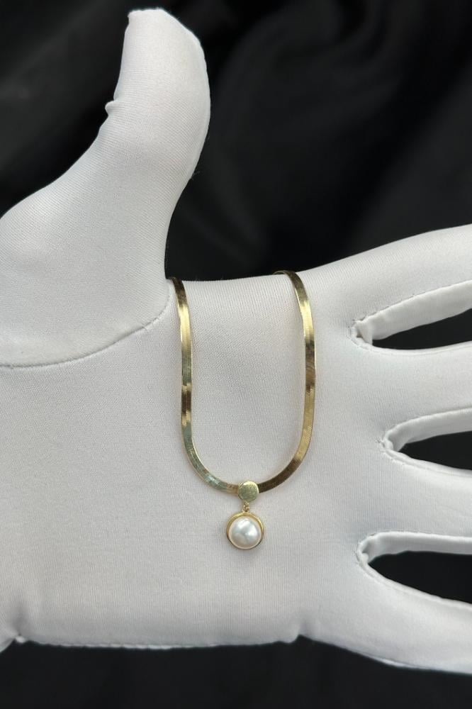 فلات ذهب مع لؤلؤ عيار 18 وزن من 4.7 الى 4.8 جرام