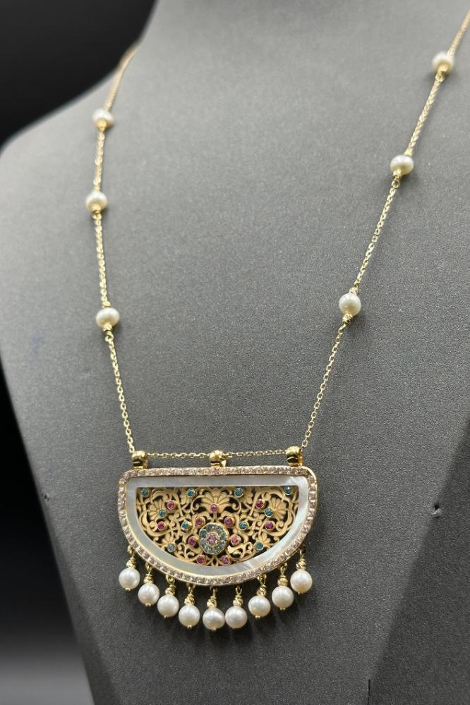 عقد شناف ذهب مع لؤلؤ عيار 18 وزن 6.3 جرام
