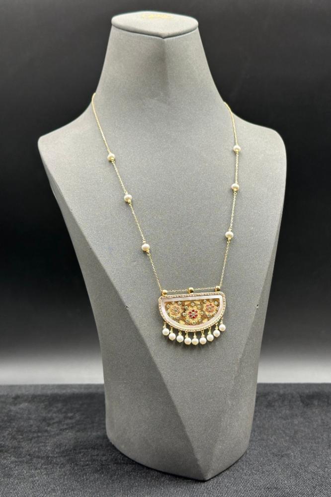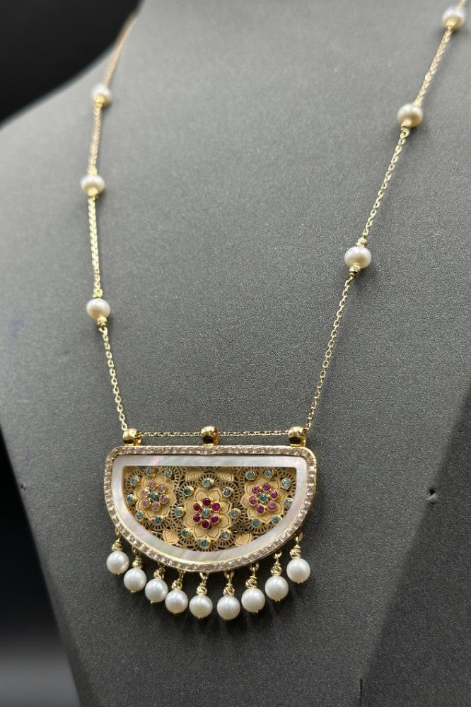 - عقد شناف ذهب مع لؤلؤ