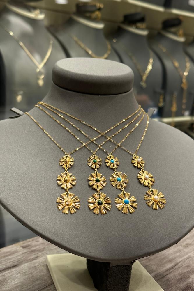 عقد رموش الذهب نازل ثلاثي ( عدة الوان ) عيار 21 وزن من 2.2 الى 2.3 جرام