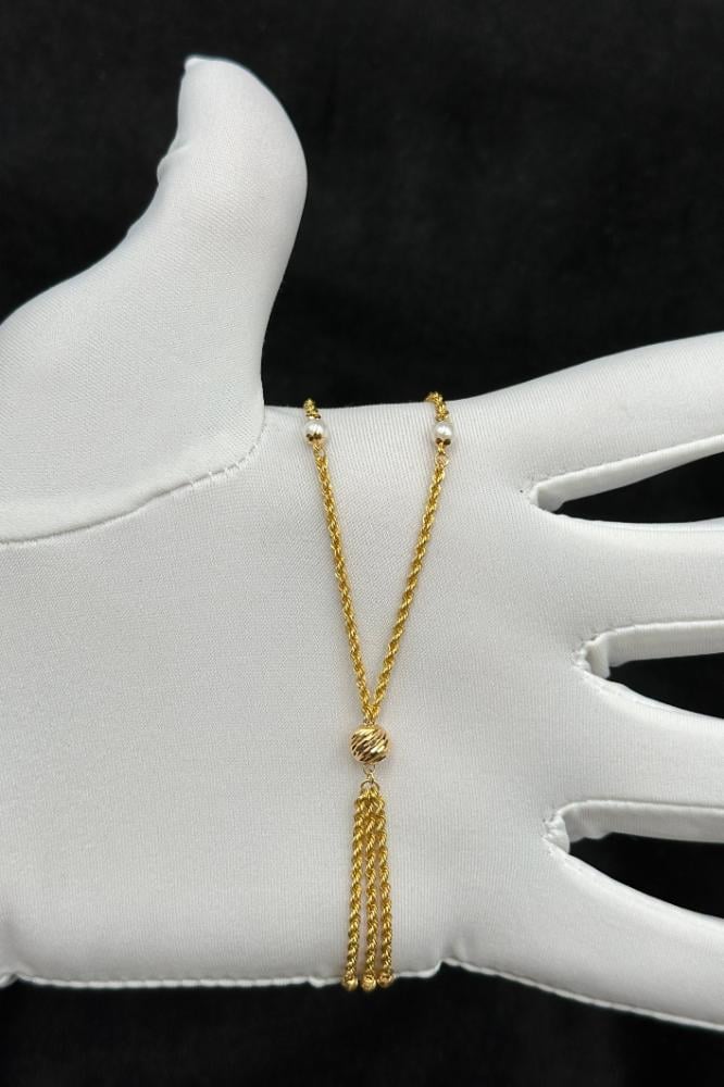 عقد مجدول مع كور ذهب مع صدف ابيض عيار 21 وزن 3.4 جرام