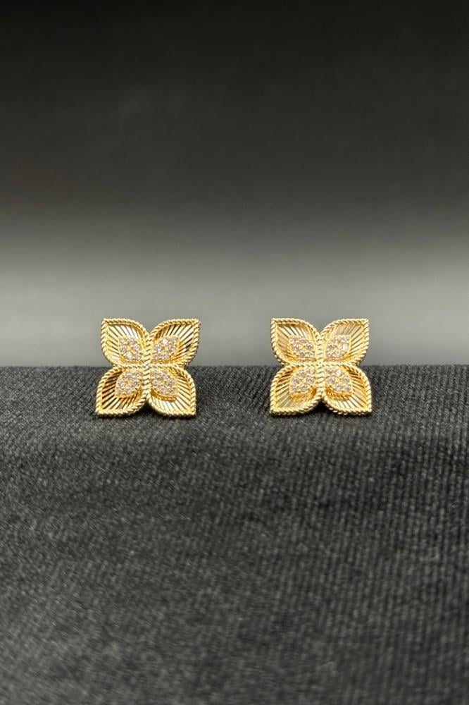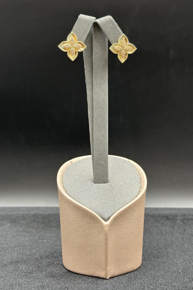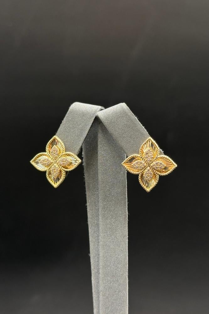 تميّزي بإطلالة ملوكية مع حلق وردة (حجم كبير) ذهب تصميم ألماس من خالد حلبي، قطعة تجمع بين الأناقة والفخامة بوزن 4.6 جرام من ذهب أصلي عيار 18.