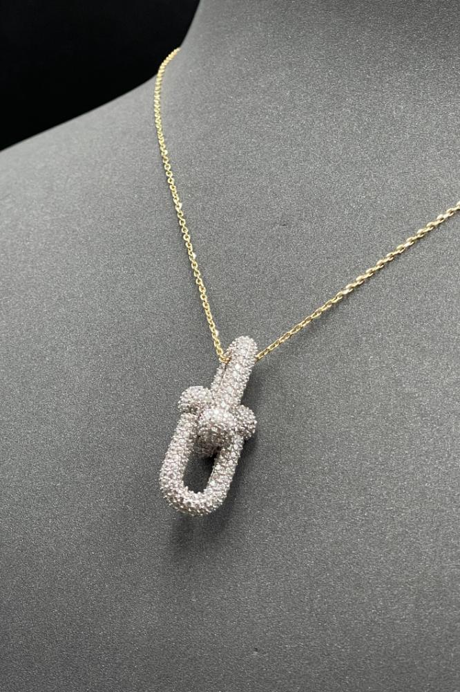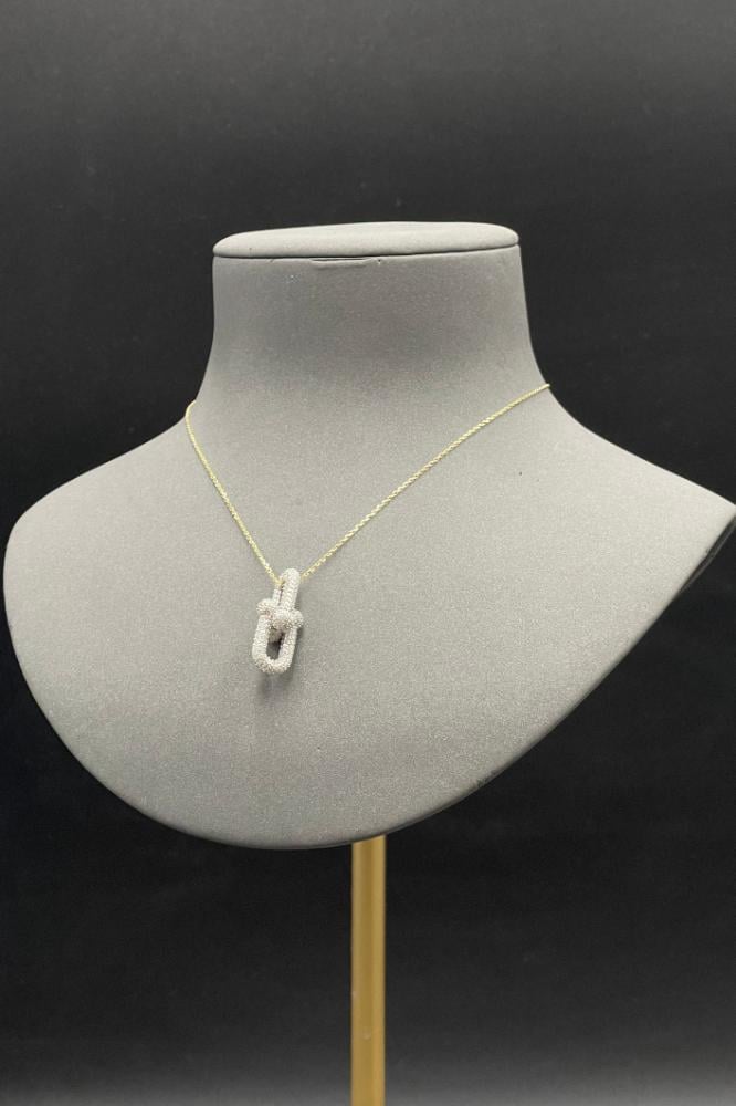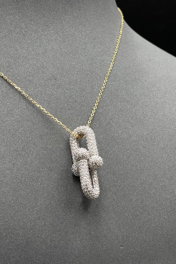 - عقد جنزير ذهب ابيض مع اصفر تصميم الماس