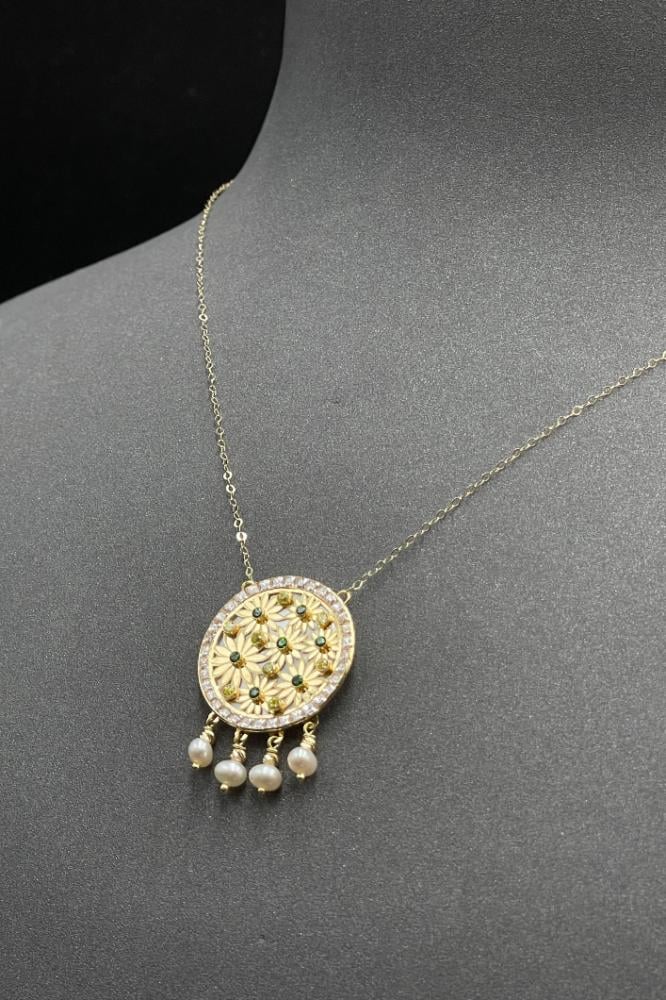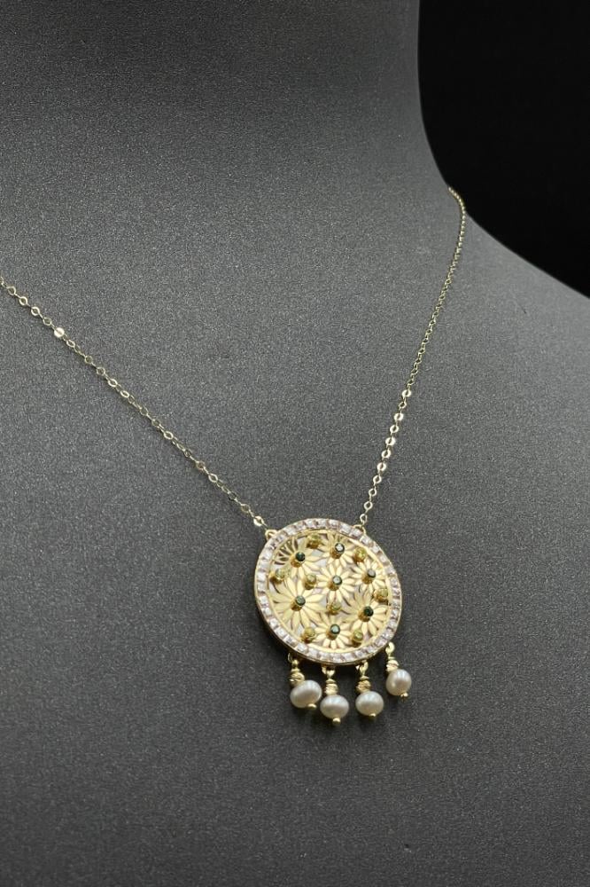- عقد شناف ذهب مع لؤلؤ تصميم الماس