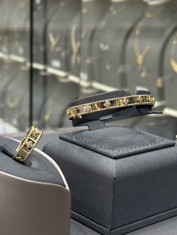 - ذهب عالي الجودة: مصنوعة من ذهب صافي يضمن متانة ولمعان يدوم طويلاً.