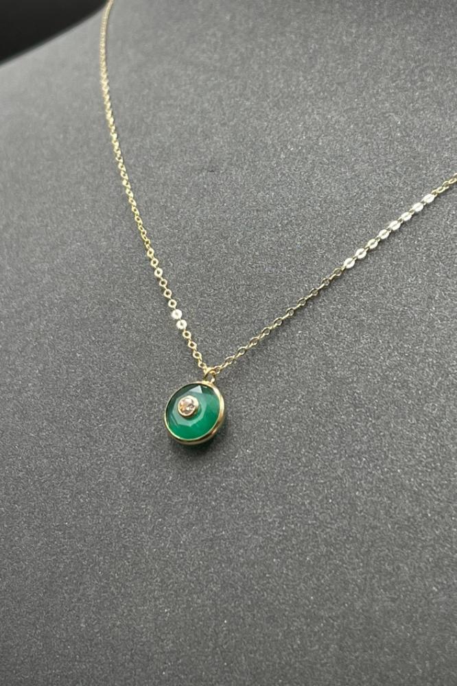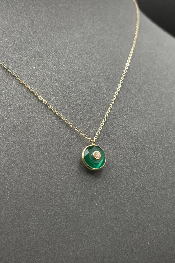 عقد دائرة اخضر مع فص ذهب تصميم الماس عيار 18 وزن 1.2 جرام