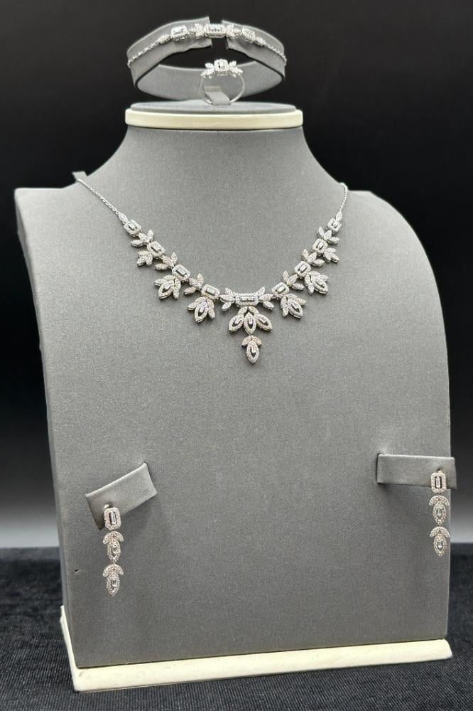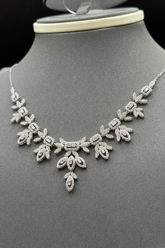 وزن 16.6 جرامعيار 18طول العقد 44 سمطول الاسوارة 18 سمطقم ذهب تصميم الماس سعر المنتج مرتبط بسعر الذهب العالمي