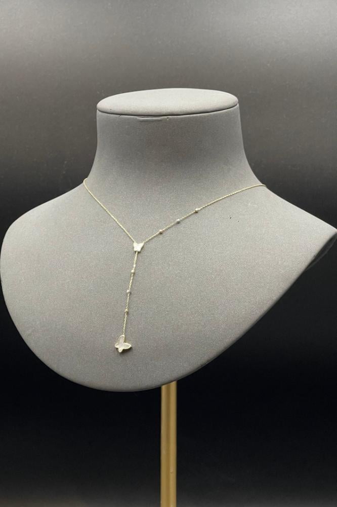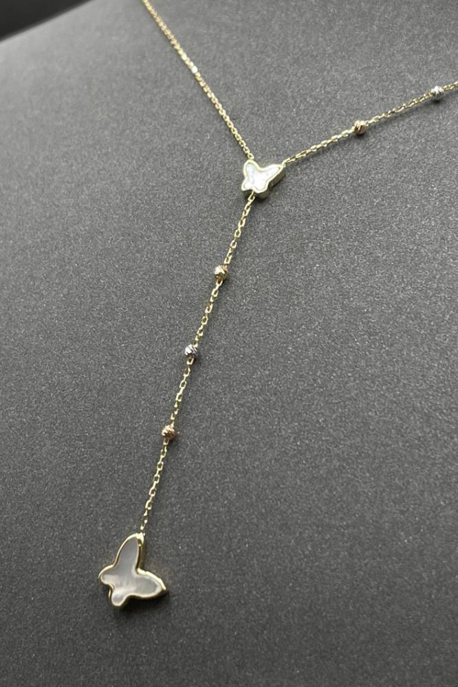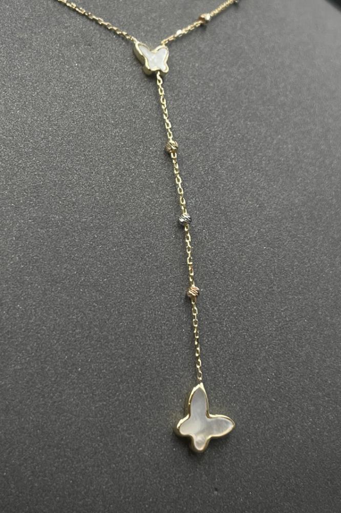 عقد فراشة نازل مع صدف ابيض عيار 18 وزن 2.1 الى 2.2 جرام