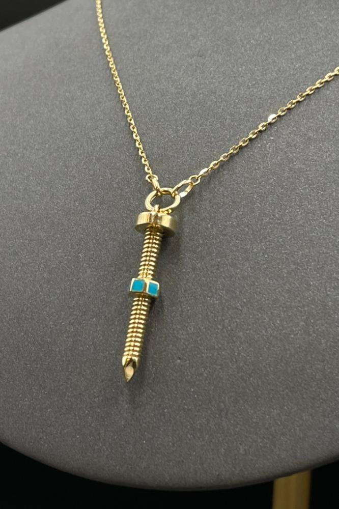 عقد مسمار ذهب صافي ملون ايطالي