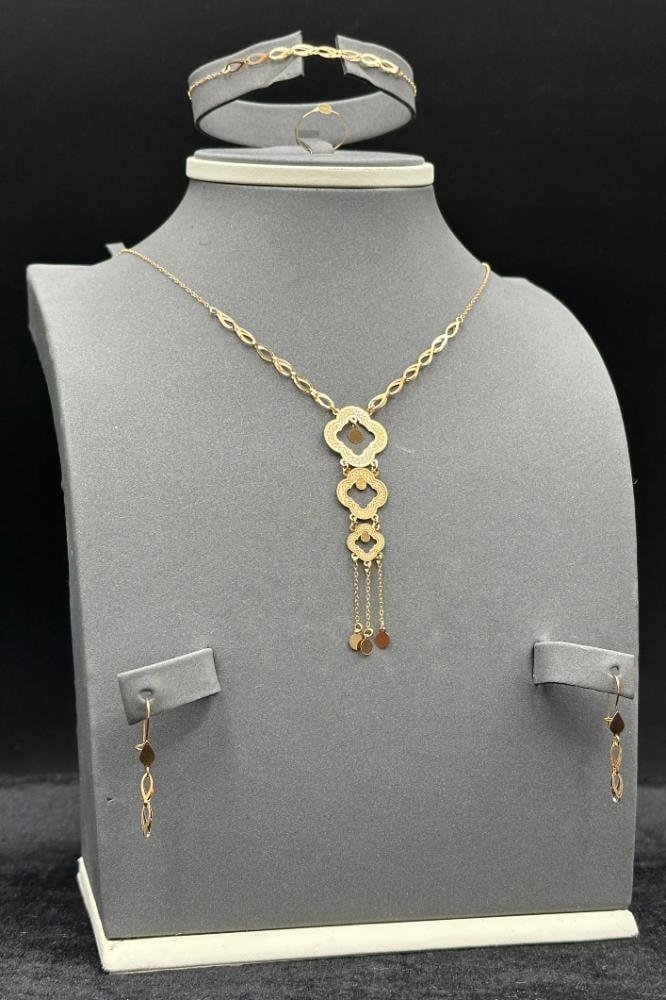 وزن 2.8 جرامعيار 21طول العقد 52 سمطول الاسوارة 18 سم طقم ثلاث وردات ذهب صافي سعر المنتج مرتبط بسعر الذهب العالمي