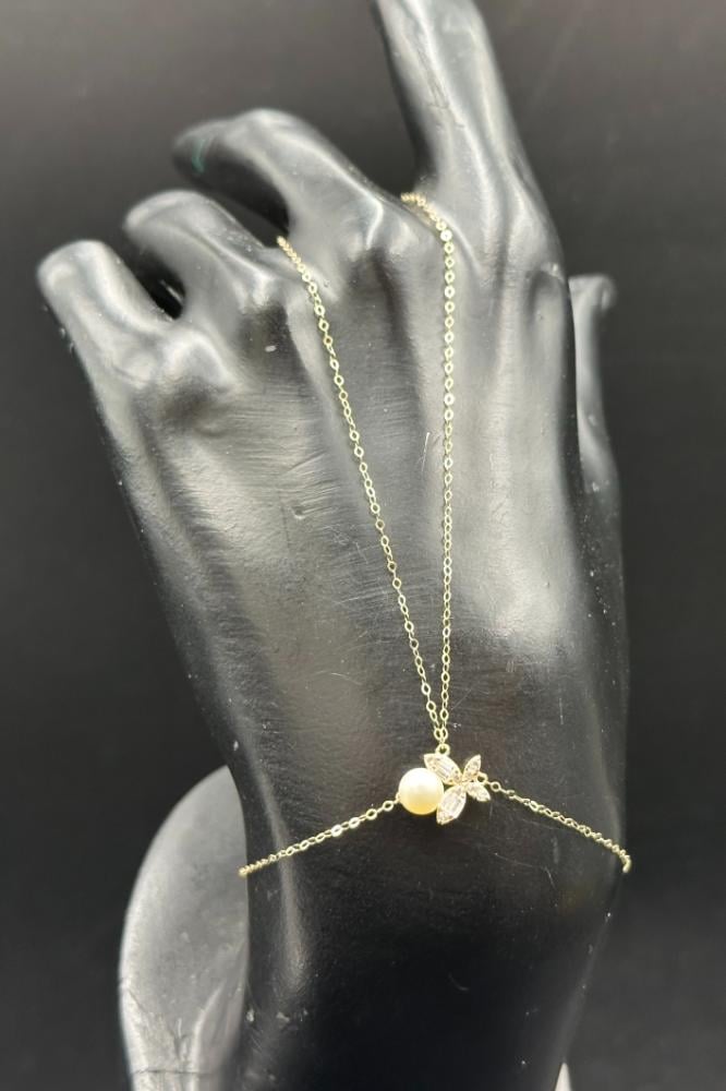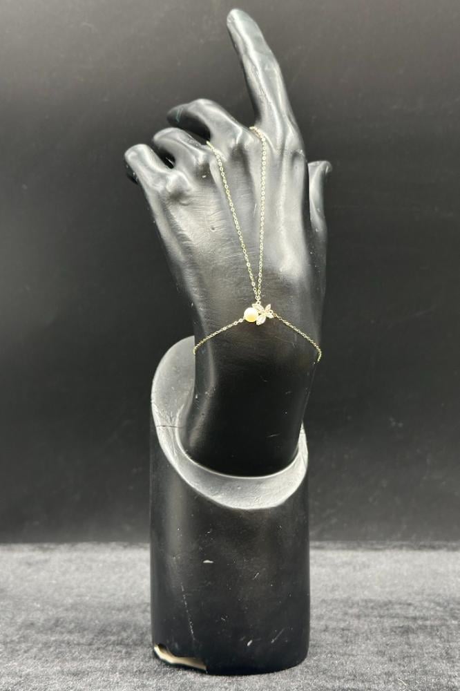 كف فراشة ذهب مع لؤلؤ عيار 18 وزن 0.9 جرام