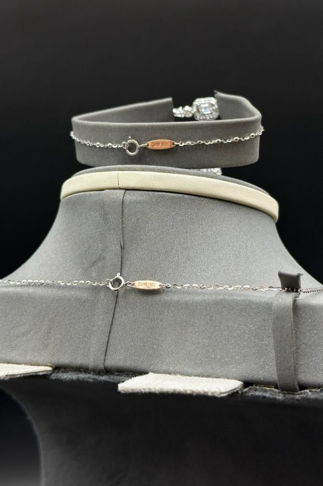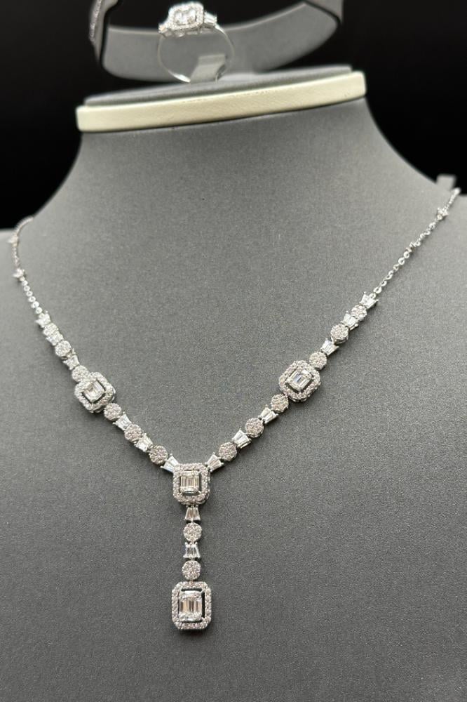 وزن 10.7 جرامعيار 18طول العقد 48 سمطول الاسوارة 19 سمطقم ذهب ابيض تصميم الماس سعر المنتج مرتبط بسعر الذهب العالمي