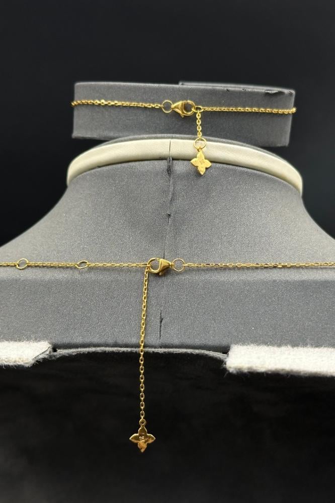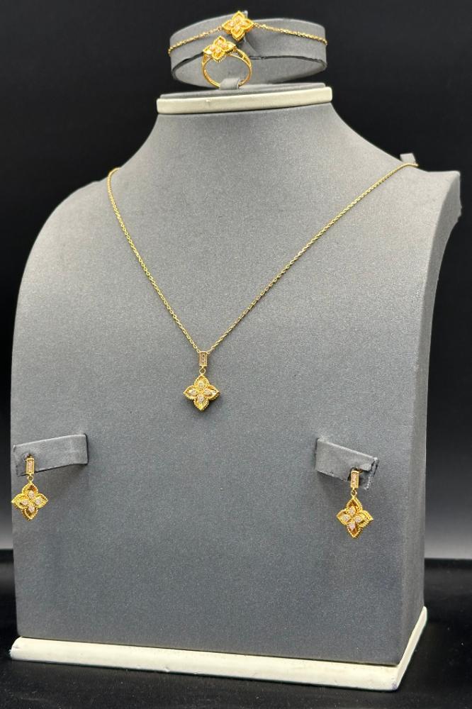 وزن 14 جرامعيار 21طول العقد 58 سمطول الاسوارة 19 سمطقم زهرة ذهب تصميم الماسسعر المنتج مرتبط بسعر الذهب العالمي