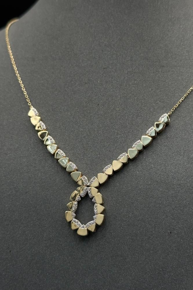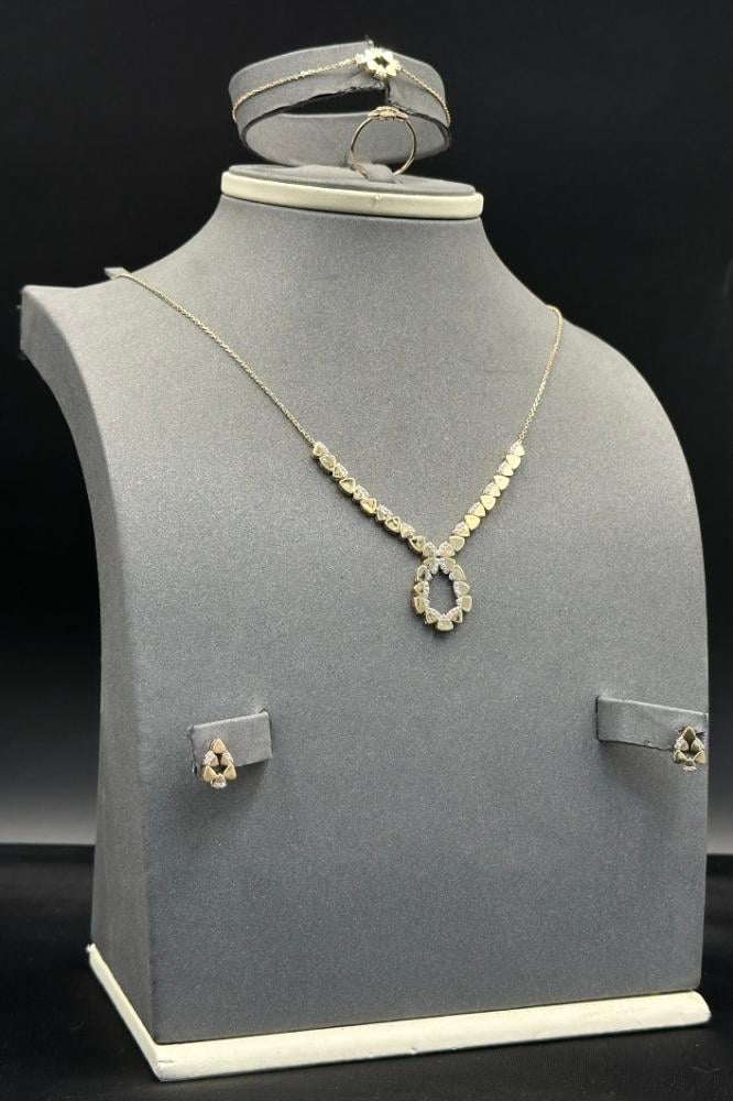 لإطلالة فخمة تجمع بين البساطة والتميز، قدّمنا لك طقم الذهب عيار 18 بتصميم الماس من متجر خالد حلبي.