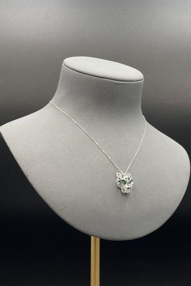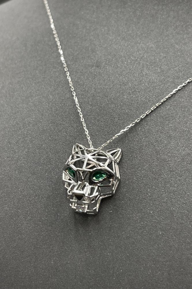 - عقد شكل تايجر ذهب ابيض تصميم الماس