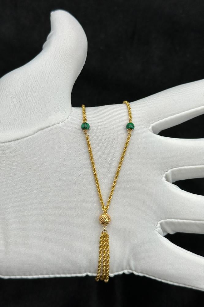 عقد مجدول مع كور ذهب مع صدف اخضر عيار 21 وزن 3.35 جرام