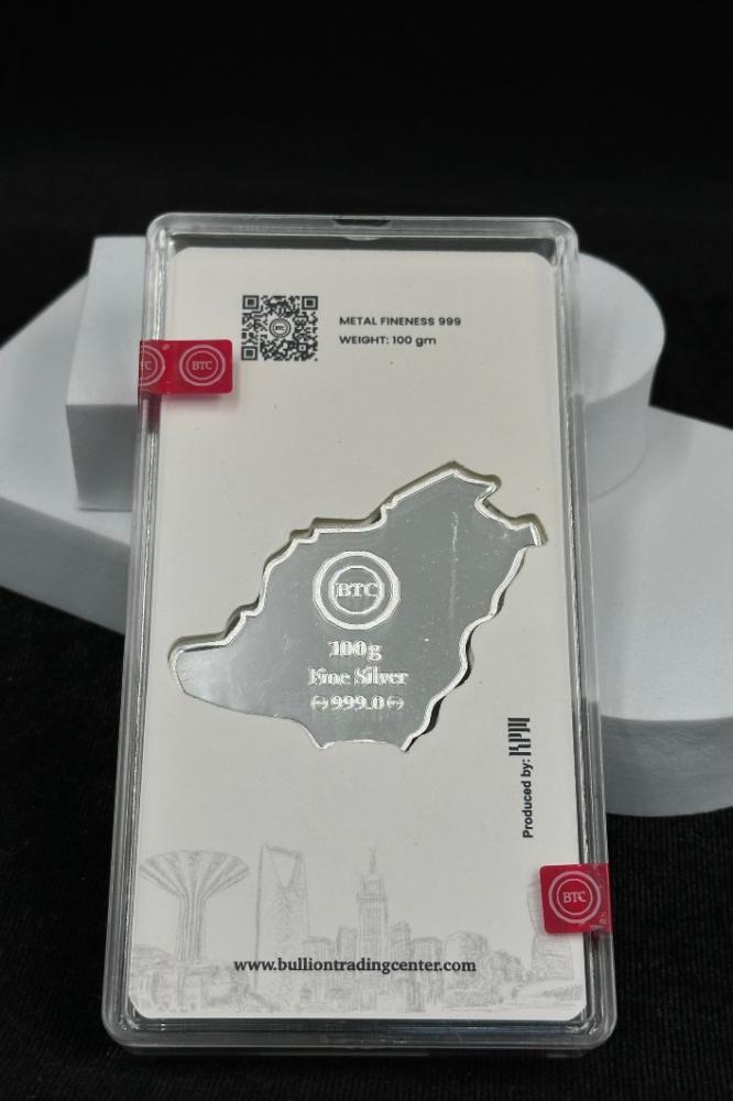 سبيكة فضة شكل وزن 100 جرام عيار 999 بي تي سي (BTC)