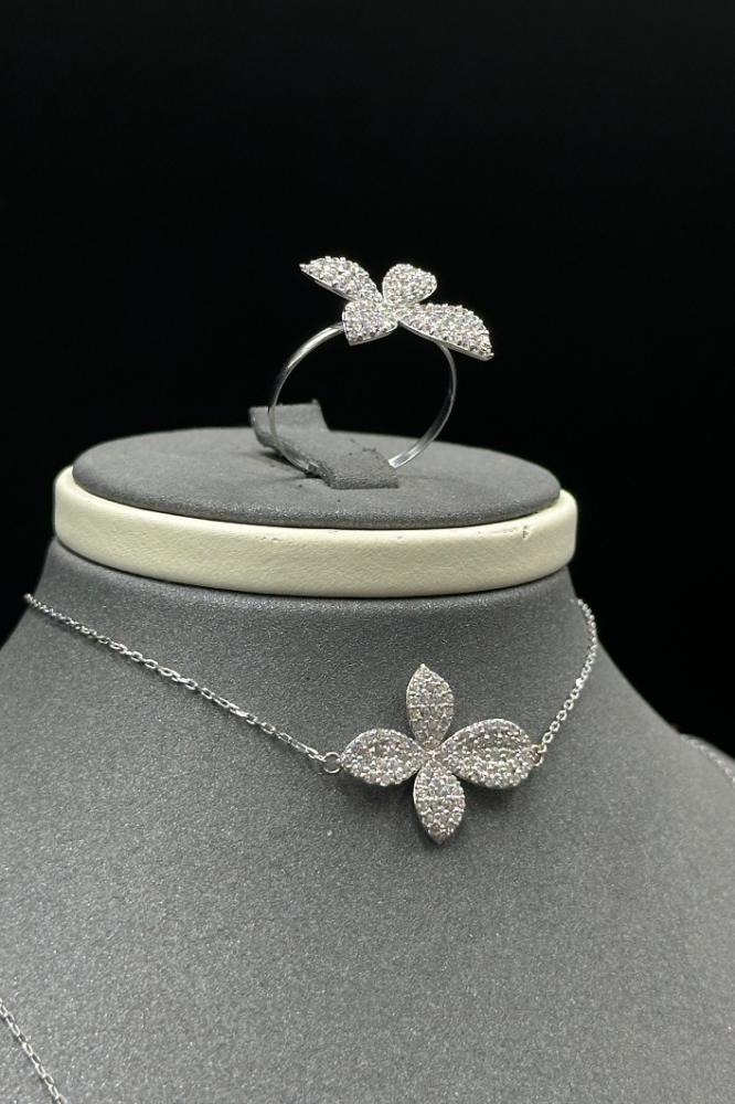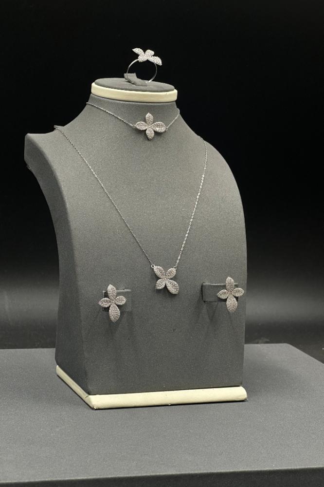 طقم ذهب أبيض بتصميم وردة ألماسية بحجم صغير عيار 18 بوزن 7.7 جرام