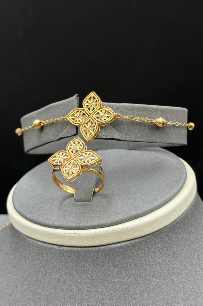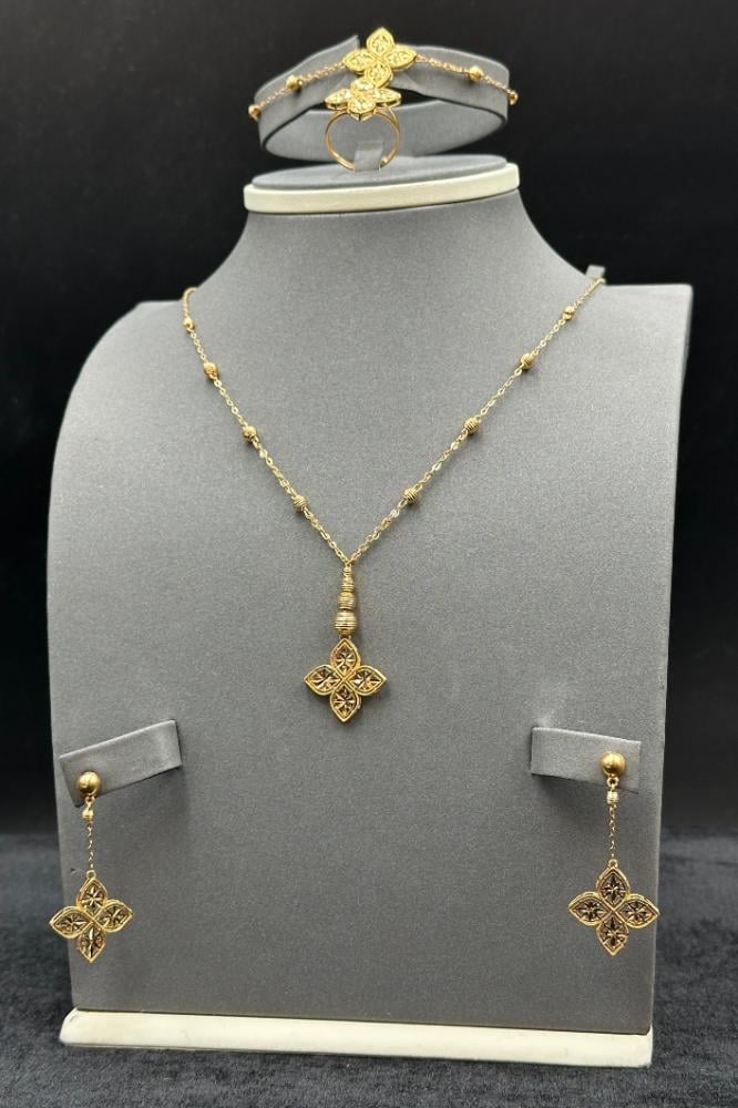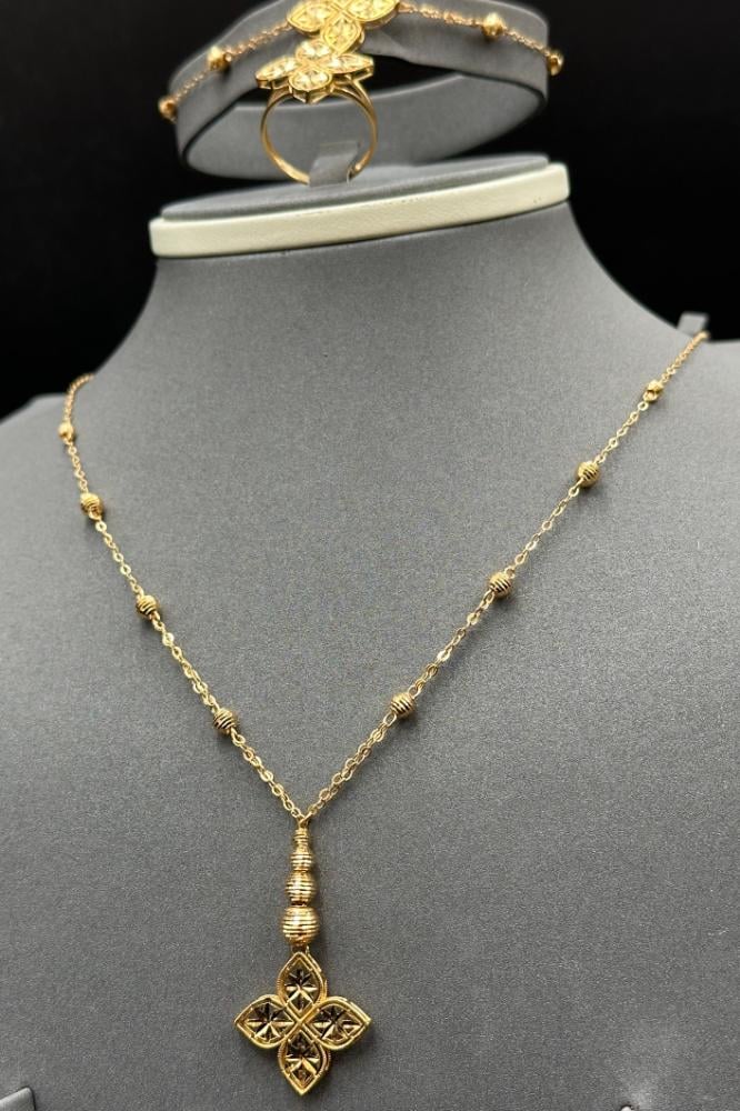 وزن 12.75 جرامعيار 21طول العقد 50 سمطول الاسوارة 19 سمطقم وردة مع كور ذهب صافيسعر المنتج مرتبط بسعر الذهب العالمي