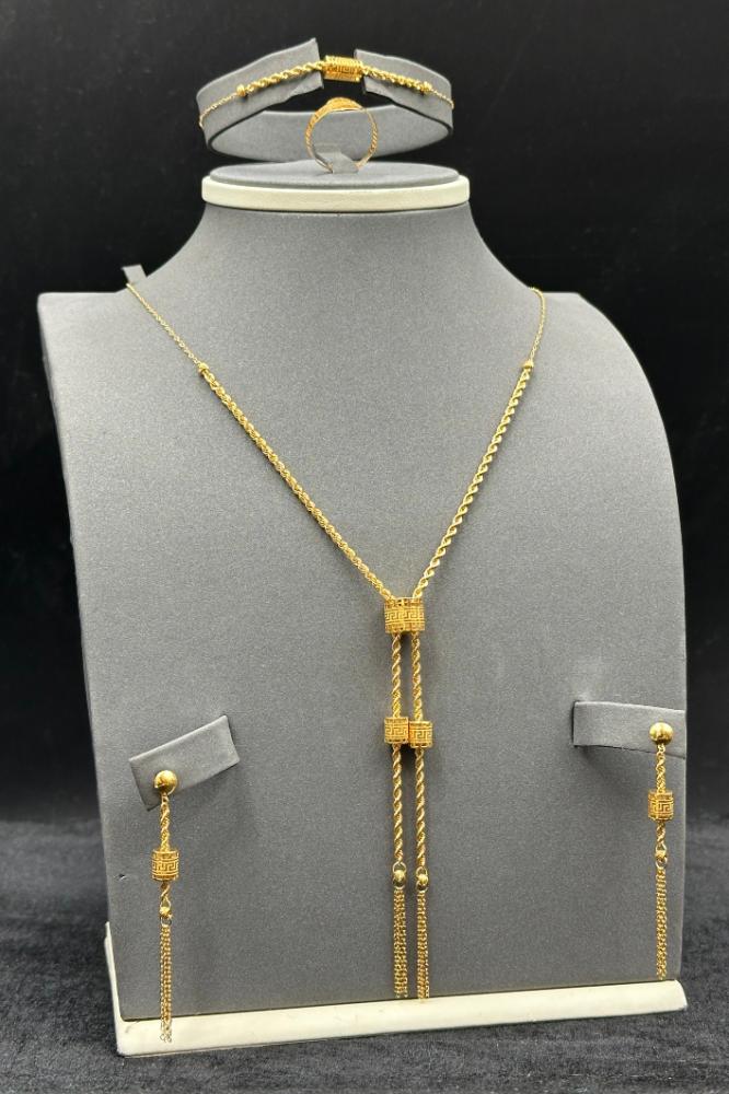 وزن 9.7 جرامعيار 21طول العقد 64 سمطول الاسوارة 20 سمطقم مجدول ذهب صافيسعر المنتج مرتبط بسعر الذهب العالمي