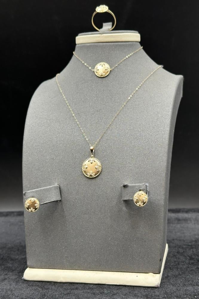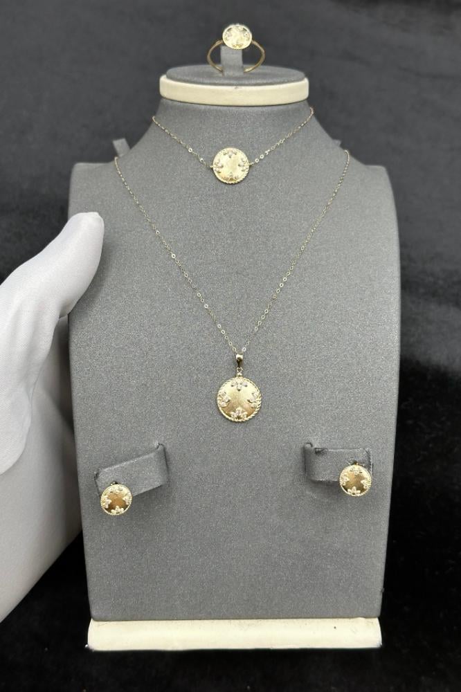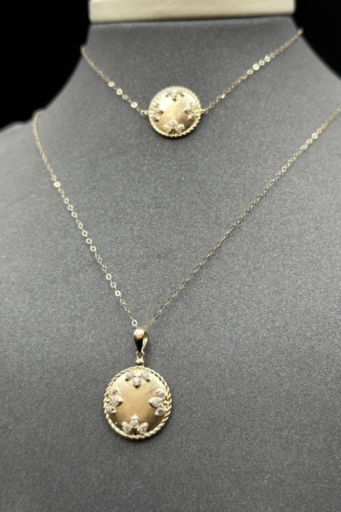 وزن 4.9 جرامعيار 18طول العقد 46 سمطول الاسوارة 19 سمطقم دائري ذهب تصميم الماسسعر المنتج مرتبط بسعر الذهب العالمي