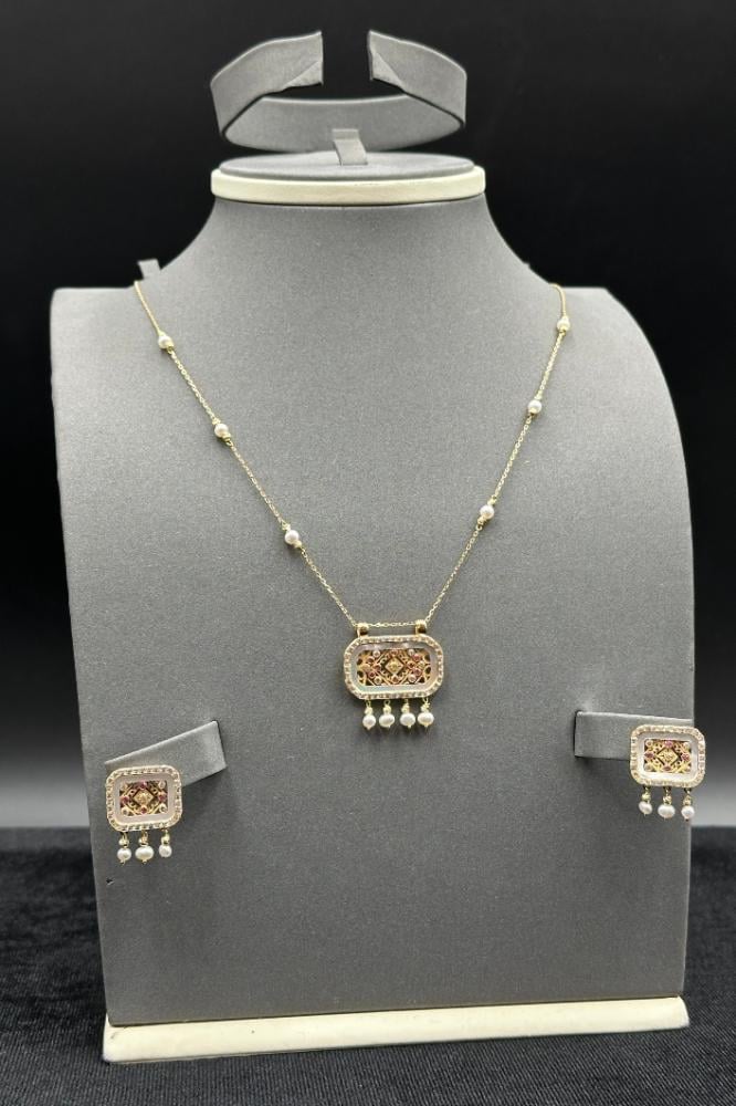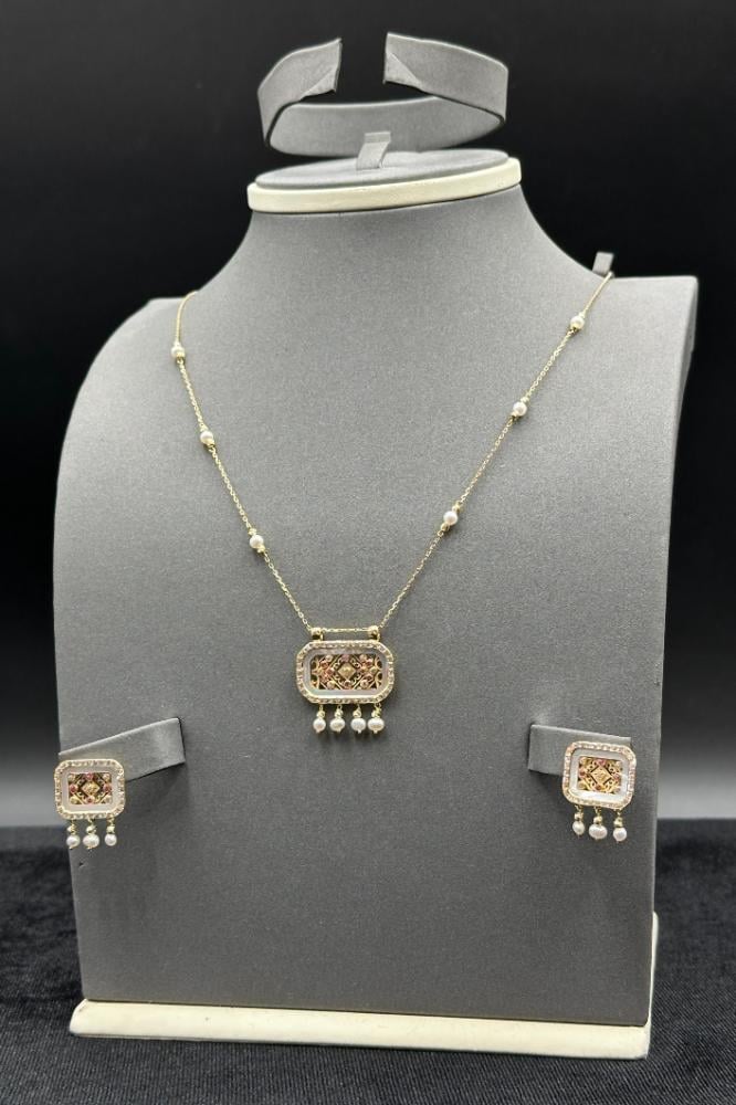الطقم يتكوّن من عقد بطول 50 سم مع أقراط متناسقة تضيف لمسة فخامة مثالية للهدايا أو للاستخدام اليومي بأسلوب راقٍ.