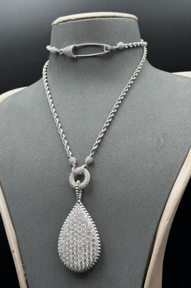 شال دمعة مجدول ذهب ابيض تصميم الماس عيار 18 وزن 24.3 جرام