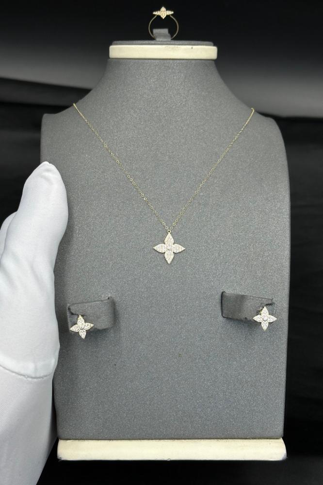 طقم اطفال زهرة ذهب تصميم الماس عيار 18 وزن 1.7 جرام