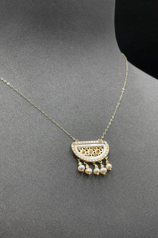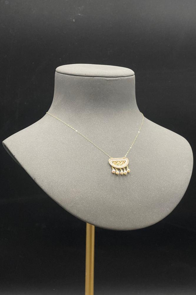 عقد شناف ذهب مع لولو تصميم الماس عيار 18 وزن 1.7 جرام