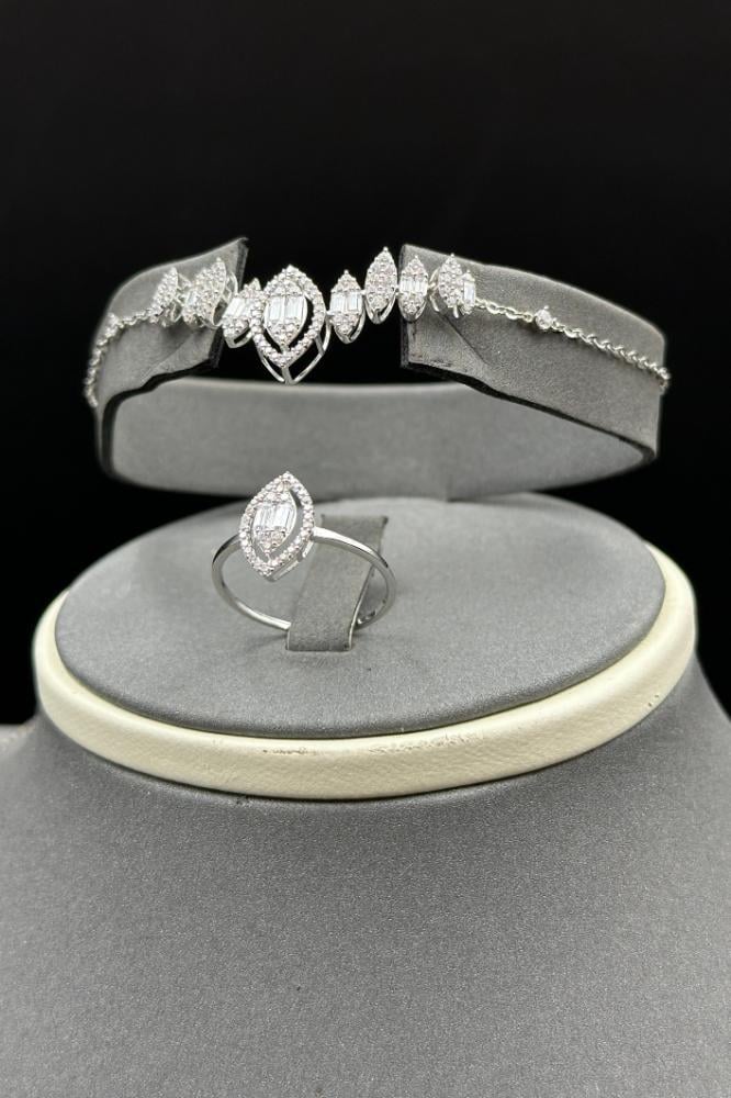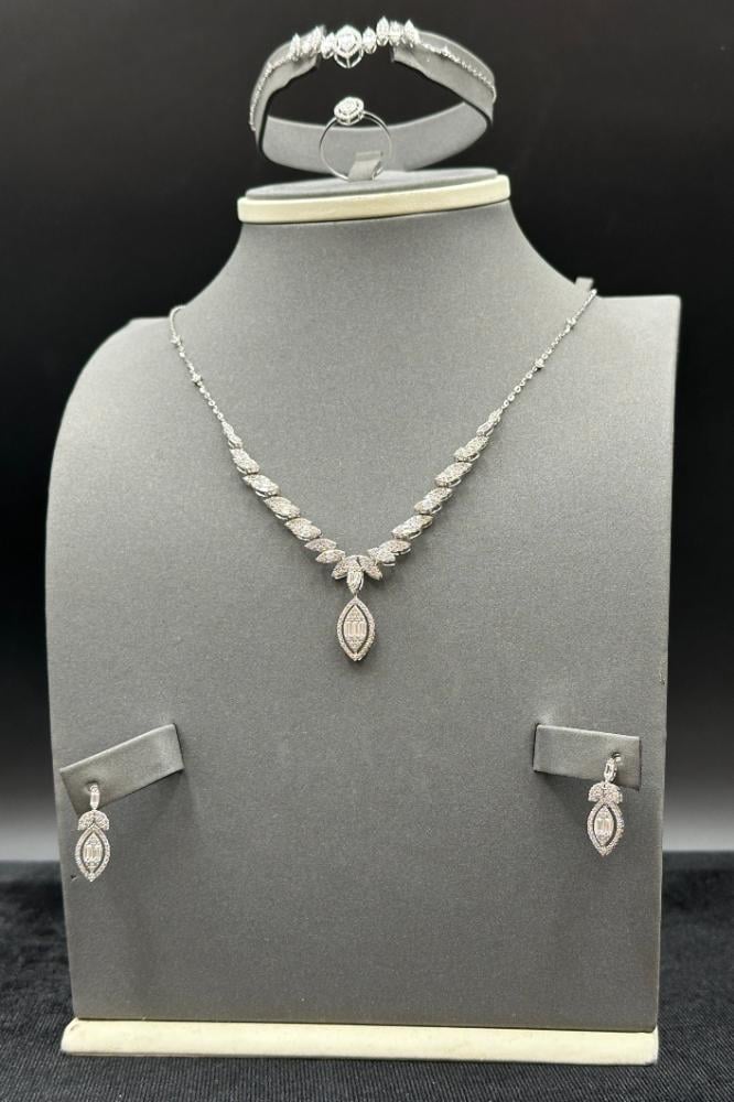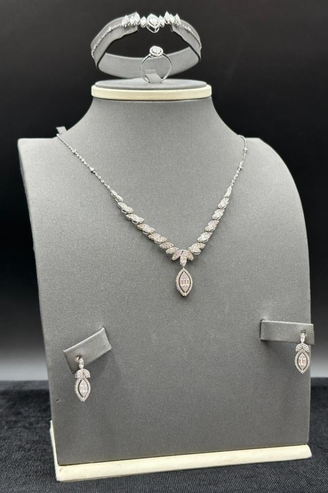 وزن 12.5 جرامعيار 18طول العقد 48 سمطول الاسوارة 19 سمطقم دمعة ذهب تصميم الماس سعر المنتج مرتبط بسعر الذهب العالمي