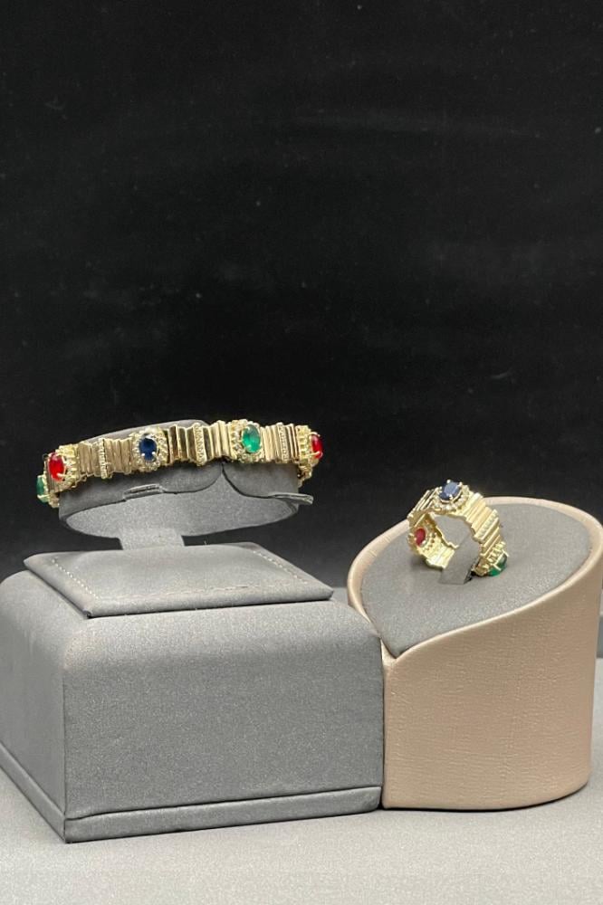 اسوارة مع خاتم ذهب تصميم الماس عيار 18 وزن 18.2 جرام