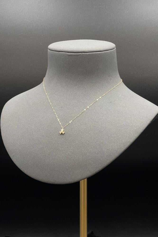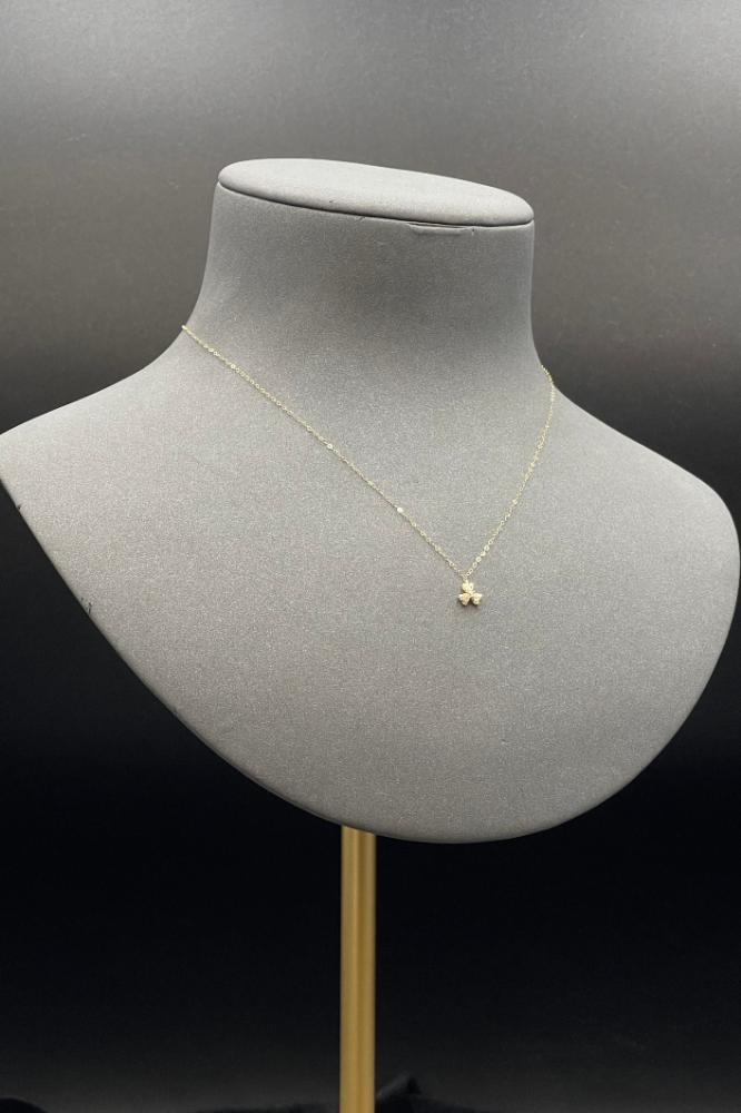 - عقد زهرة ثلاثية ذهب تصميم الماس