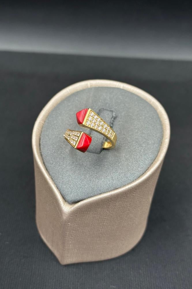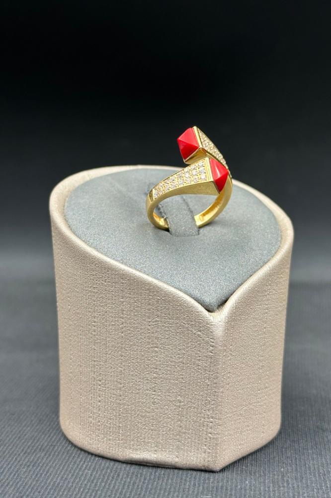 - خاتم ذهب تصميم الماس مع فص احمر
