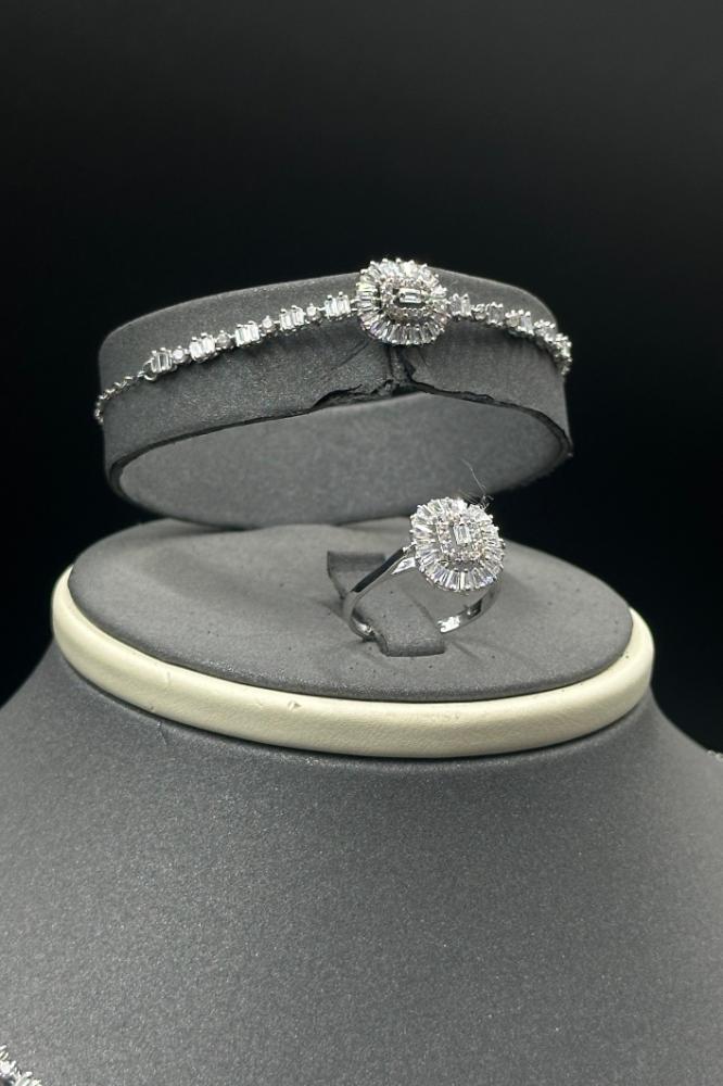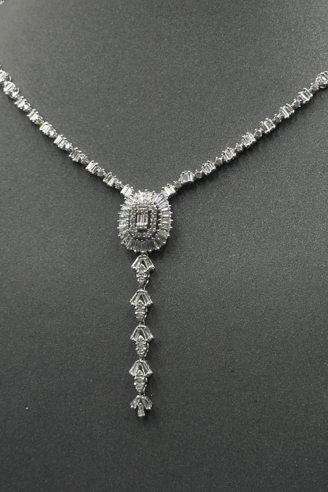 تميزي بطقم الذهب الأبيض الباقيت بتصميم الألماسي الفخم عيار 18 بوزن 13.9 جرام، واجعلي إطلالتك دايمًا أنيقة وجذابة ومليئة بالفخامة. 🌹