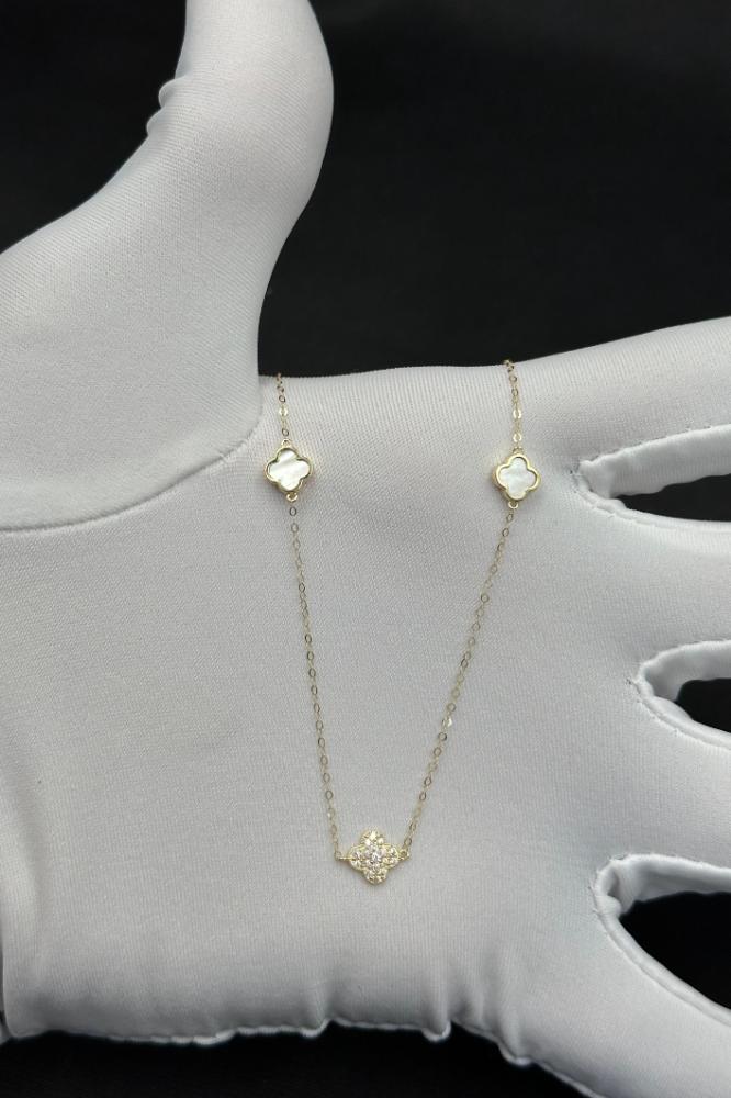 شال وردة ذهب مع صدف ابيض عيار 18 وزن 1.8 جرام