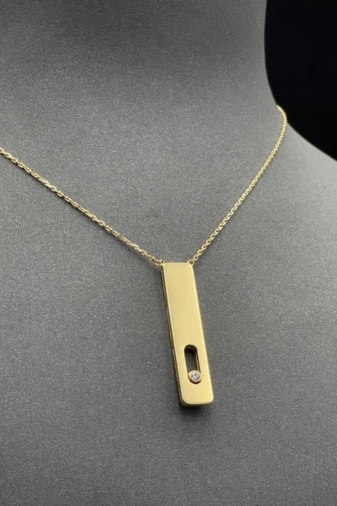عقد مستطيل ذهب تصميم الماس عيار 18 وزن 6.4 جرام