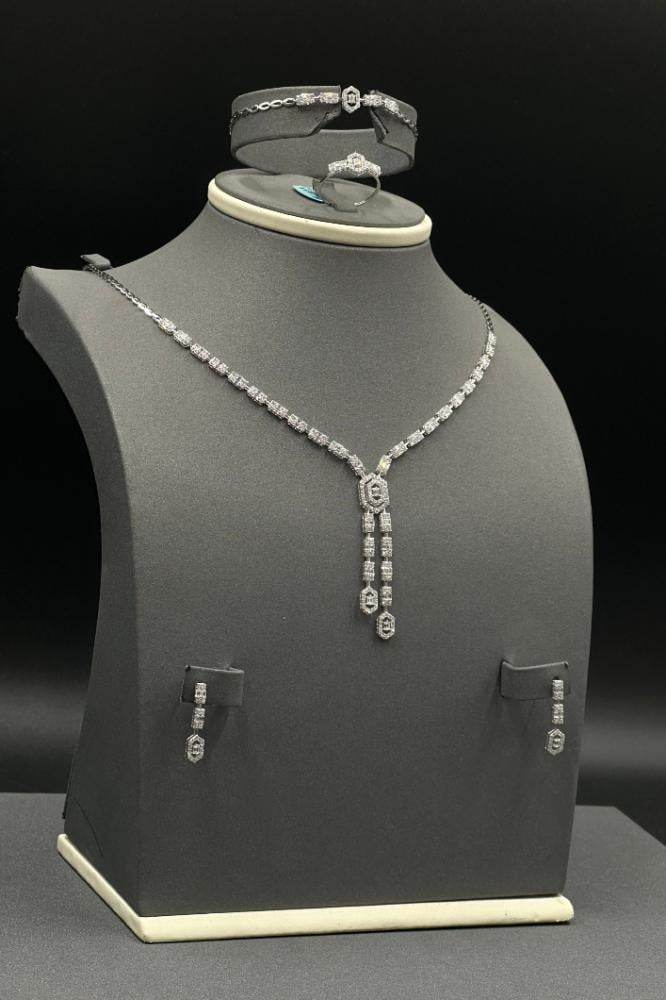 احصلي على طقم ذهب أبيض عيار 18 يضم قطعًا رائعة وأنيقة لتتألقي في كل مناسبة. يبلغ وزن الطقم 13,36 جرام، مما يجعله خيارًا مثاليًا لإكمال إطلالتك بطريقة مذهلة. تتميز القطع بتصميم فاخر وراقي يضيف لمسة من الأناقة والجمال إلى إطلالتك. لذا، لا تترددي في الحصول على هذا الطقم الراقي اليوم واستعدي لسحر الجميع بإطلالتك الراقية.