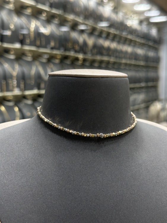عقد كور ذهب ليزر عيار 18 قيراط هو نوع من أنواع المجوهرات المصنوعة من الذهب عيار 18 قيراط والتي تتميز بتصميم جميل. يتم استخدام تقنية الليزر لإنشاء نقوش دقيقة على سطح الذهب لإضافة تفاصيل دقيقة وجمالية للعقد