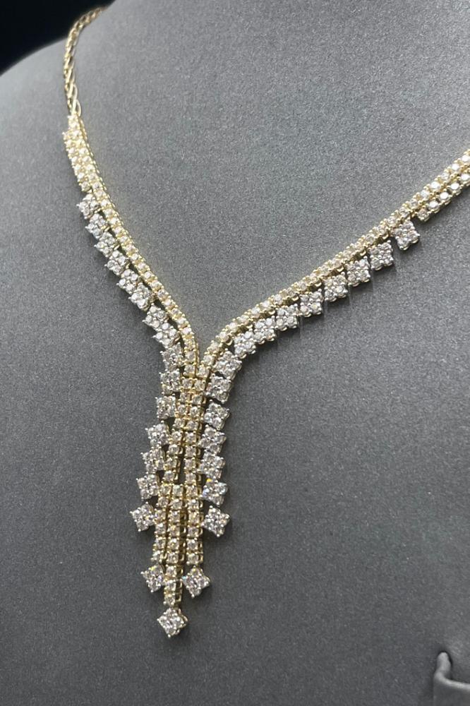✨ أضيفي لمسة أنوثة فاخرة مع أطقم الذهب عيار 18 بتصاميم الماس الراقية من خالد حلبي – تسوقي الآن!