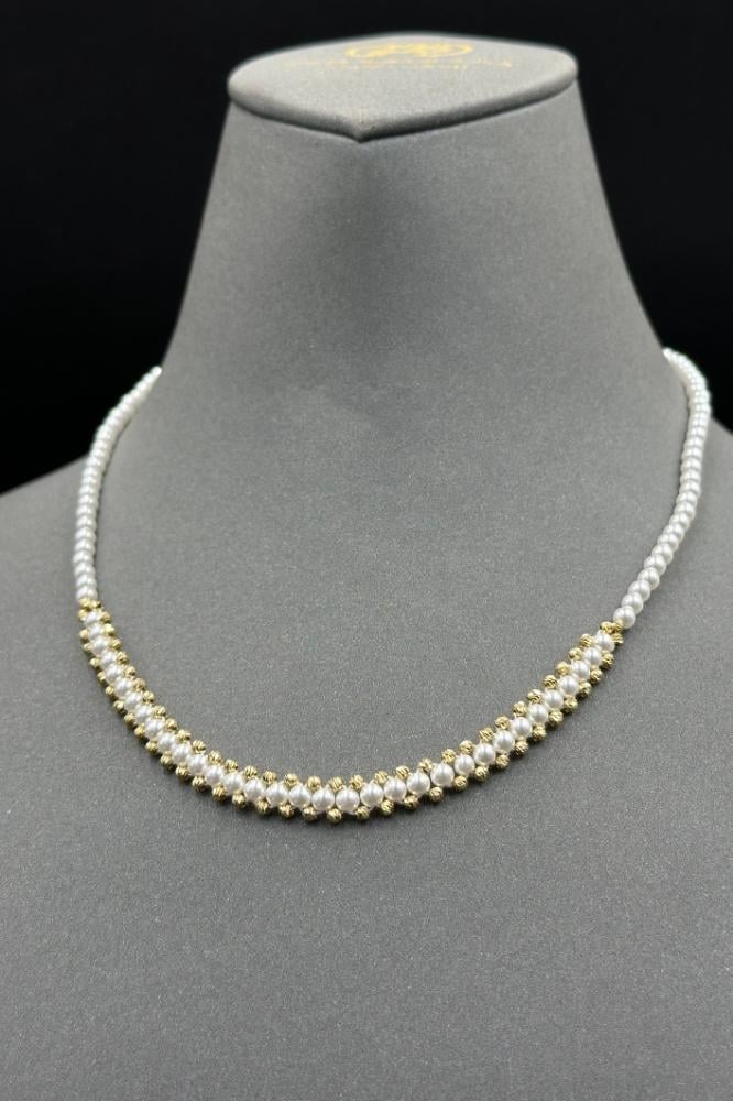عقد لؤلؤ كور مع ذهب بالأطراف عيار 18 وزن 2.4 جرام