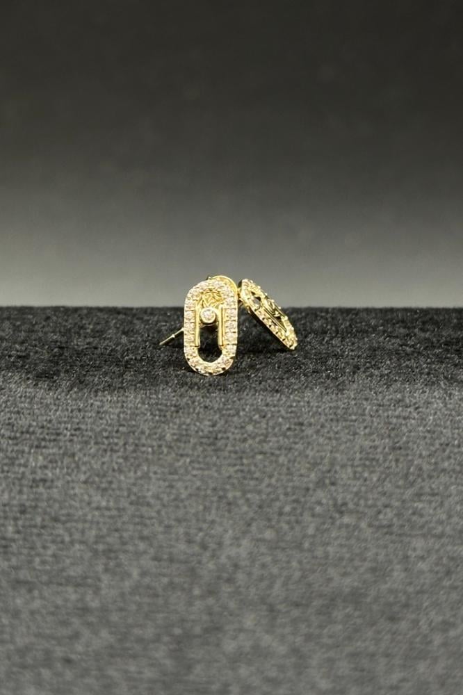 حلق مستطيل ذهب تصميم الماس عيار 18 وزن 0.7 جرام