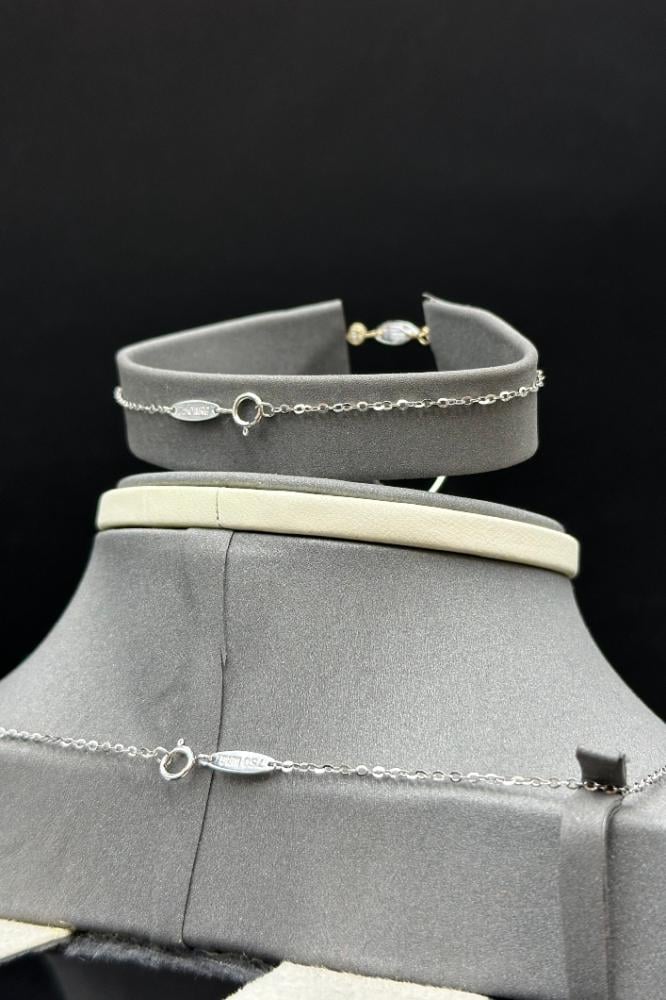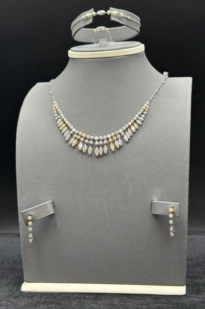 وزن 11.55 جرامعيار 18طول العقد 42 سمطول الاسوارة 19 سمطقم ذهب تصميم الماسسعر المنتج مرتبط بسعر الذهب العالمي