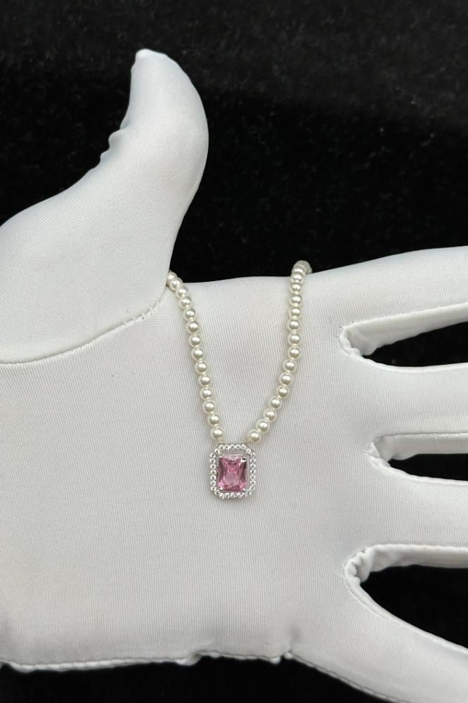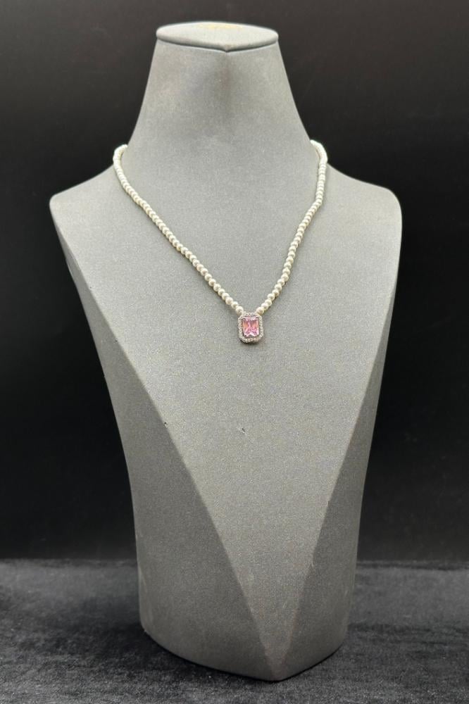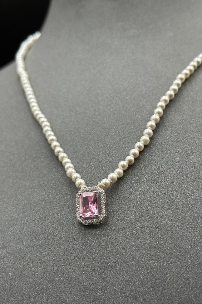 عقد لؤلؤ مع ذهب بفص وردي عيار 18 وزن 1.15 جرام