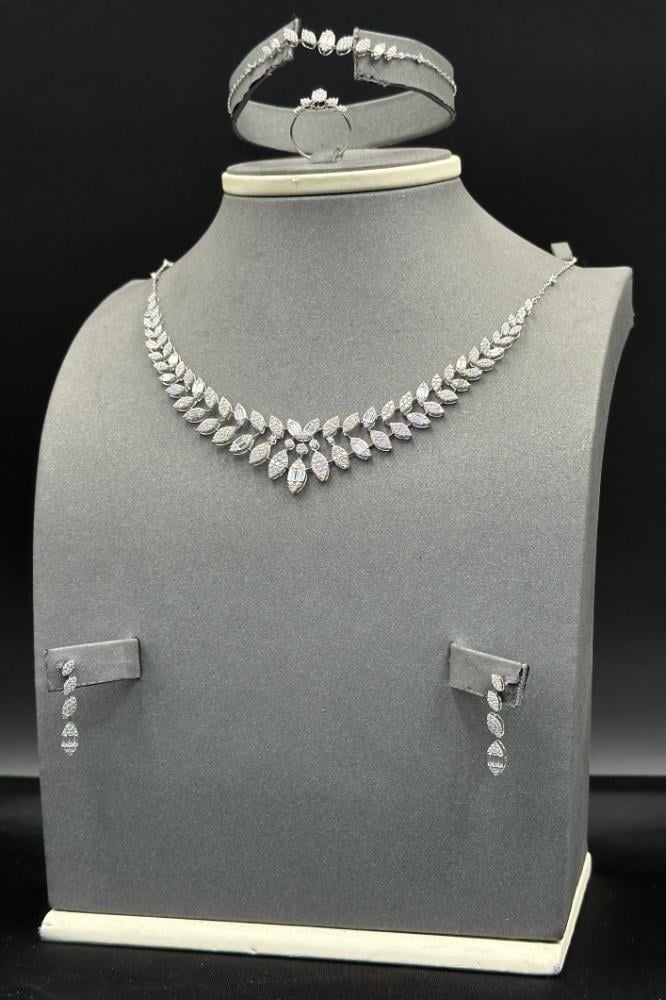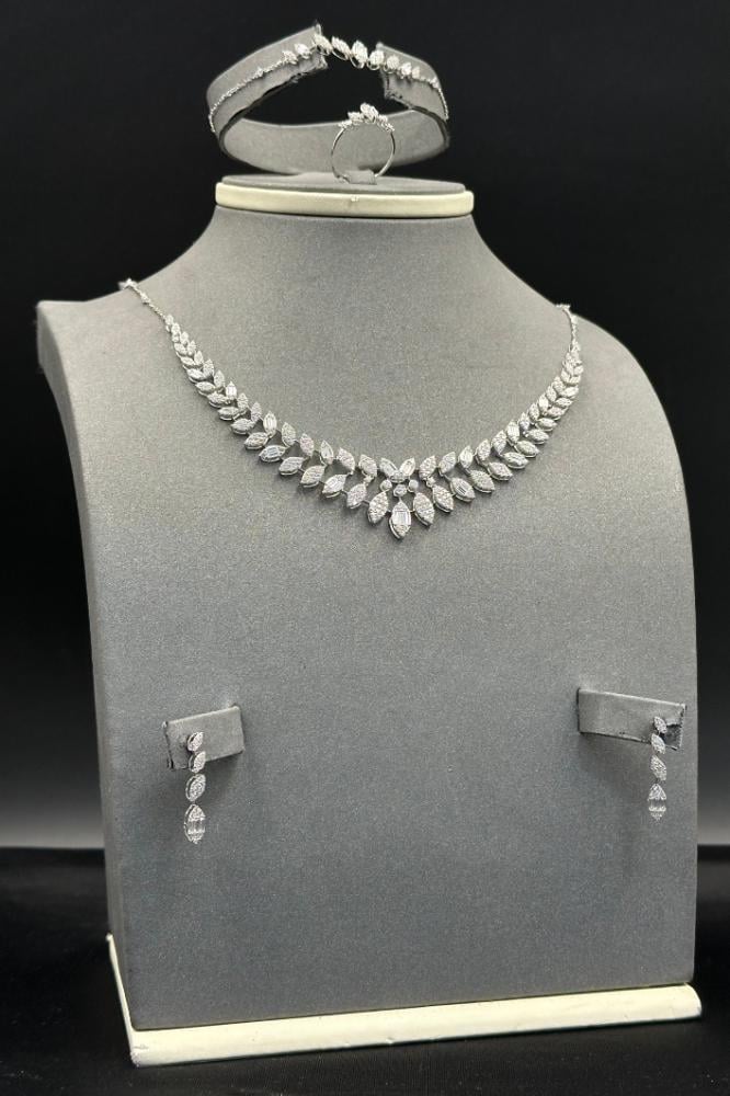 - طقم زهرة ذهب ابيض تصميم الماس